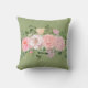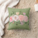 Travesseiro decorativo com uma ilustração aquosa de peões e flores de primavera em tons cor-de-rosa e verde contra um fundo verde mudo. Perfeito para primavera. Travesseiros decorativos são uma forma excelente de adicionar cor às suas cadeiras, sofá e cama - perfeito para quase qualquer quarto na sua casa. Tamanho adicional disponível.