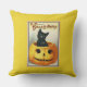 Uma maravilhosa imagem vintage do Dia das Bruxas com um doce gato preto sentado num jack o' lanterna. Cuidadosamente restaurado e dado um quadro estilizado. Que travesseiro decorativo excelente para as suas festividades de Halloween.
