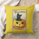 Uma maravilhosa imagem vintage do Dia das Bruxas com um doce gato preto sentado num jack o' lanterna. Cuidadosamente restaurado e dado um quadro estilizado. Que travesseiro decorativo excelente para as suas festividades de Halloween.