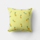 Padrão de peras amarelas sobre fundo amarelo e cor verde no verso do travesseiro