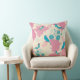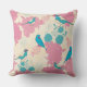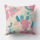 Magnifique coussin avec des perruche bleues posées sur dés pivoine roses.