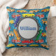 Um Padrão Automotivo Para Crianças Projetado Em Um Travesseiro decorativo Azul E Patternado Em Carros Coloridos Apenas Adicione O Nome Da Criança.