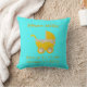 carrinho de bebê amarelo cortado à mão com arco branco e botões brancos e belo fundo azul claro sobre o travesseiro para um bebê ou uma menina. *Todas as coisas que você vê nos produtos são feitas à mão, mas você deve saber que você consegue uma foto!