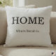 Elevate your everyday living space with this clean and elegant typography pillow from the BNG Finesse collection. The design features the word "HOME" in a classic, bold serif font, paired with a customizable subtitle "Where [Name] Is."