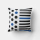 The modern personalized throw pillow is a minimalist, modern geometric one of black and deep blue stripes and polka dots along with up to nine (9) typography fields for inspirational quotes, names, or other personalization. The current motivational phrases are “Dare to dream big” “Live with intention” “Count your blessings” “Believe in yourself” “Illuminate the world” “Celebrate small victories” “You are enough” “Find beauty everywhere” and “Pursue your passion.” Personalize this item or purchase as is.