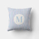 Simple, clean, pretty vertical pinstripe pastel blue and pink throw pillow, personalized with your initial. Perfect for your bedroom, a dorm room, or a nursery.monogram