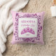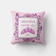 Fluttering violet butterflies pillow is versatile for berry or pink theme colors. Butterflies and gemstone tiara can easily be resized and repositioned on throw pillow. Say congratulations with a purple princess design. Decorative, leafy border beautifully surrounds your message.