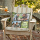 Pillow featuring a photo collage with a garden theme. Perfect for outdoor use in the garden or on a balcony.