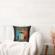 O engraçado e colorido travesseiro decorativo piloto de drones apresenta um drone silencioso, piloto de drones e árvores em um fundo listrado colorido com texto que diz Nunca Subestimar um Velho Que Também é Piloto de Drone!
