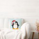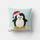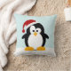 Este belo travesseiro decorativo apresenta uma ilustração vetorial adorável de um pinguim engraçado vestindo um chapéu de Papai Noel em um fundo de neve. Perfeito para decorar qualquer lugar para as férias de inverno!