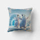 Dois pinguins dançando alegremente em frente a um iglu sob um céu ensolarado
