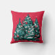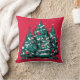 Almofada Pinheiros e enfeites de natal de fundo vermelho