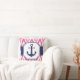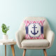 Pink and blue nautical decorative pillow. The pillow is decorated with a pink chevron print and features a navy blue anchor. Colorful and bright this pillow adds interest and joy to your living space.