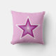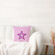 Design moderno com uma estrela rosa e branca "brilhando" sobre um fundo rosa pálido na frente e um fundo branco comum. Travesseiro decorativo com um design personalizável para você personalizar com seu próprio texto, imagens e ideias. Esta é uma imagem de arte digital criada usando fotografias originais e técnicas digitais e impressa em tecido, ela não brilha ou contém faíscas reais.