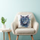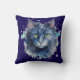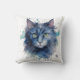 Retrato de arte aquarela de um gato, apresentando blues calmos com tons sutis de roxo e verde. A gata está centrada na pintura com seu olhar profundo e seus olhos verdes proeminentes, cercada por um efeito espalhador, acrescentando ao trabalho de arte uma sensação viva e fluida. Perfeito como peça decorativa ou design inspirado em animais.