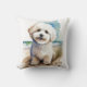 Cachorro Bichon Frise na trabalho de arte de praia em aquarela.