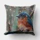 Adorável travesseiro decorativo de pássaro azul oriental. A design neste travesseiro decorativo é de uma peça mestiça de pássaro azul de inverno criada com acrílicas, papel e muito mais. Perfeito para a natureza e amante de pássaros! Este trabalho de arte também está disponível em outros produtos para mistura e correspondência! O Emporium da Jenn.
