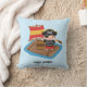 Deorem o quarto das crianças para uma aventura marítima com este travesseiro decorativo bonito e colorido! Ele mostra um garoto vestido de capitão pirata com chapéu cruzado, mancha e telescópio de navegação. Ele está numa jangada de madeira com um barril e uma vela vermelha e amarela. Personalize com o nome da criança, incluindo um título de capitão divertido. O fundo azul claro pode ser alterado para ajustado do esquema de cores da sua sala.