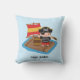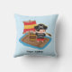 Decore o quarto das crianças para uma aventura no mar com esta linda e colorida almofada! Ela apresenta um menino vestido como capitão pirata com chapéu de ossos cruzados, tapa-olho e um telescópio de navegação. Ele está em uma jangada de madeira com um barril e uma vela vermelha e amarela. Personalize com o nome da criança, incluindo um título divertido de capitão. O fundo azul claro pode ser alterado para se adequar à paleta de cores do seu quarto.