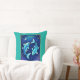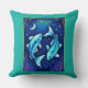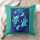 Pillow in a Pisces illustration featuring two turquoise blue fish swimming in opposite directions against a starry, deep blue background. A crescent moon and stars enhance the celestial theme, evoking the imaginative spirit of the Pisces zodiac sign.