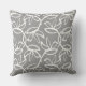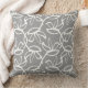 Um travesseiro decorativo floral gráfico em cinzas e esbranquiçado com flores pintadas.
