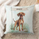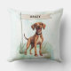 Add rustic charm to your home with this Plott throw pillow featuring a watercolor design and customizable name flag. Great for cabins or family homes with Plott Hounds.