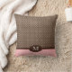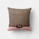 Este muito grande travesseiro 20x20 chique à moda quadrado tem um teste padrão cor-de-rosa e castanho chocolate dos polkadots na parte superior com um teste padrão cor-de-rosa macio das listras separado por um crachá facilmente personalizado do monograma. A parte traseira tem o teste padrão de bolinhas cor-de-rosa e marrom.