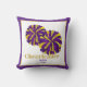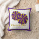 Esta travesseiro decorativo divertida para comemorar seu status é mostrada em tamanho quadrado com um pom giro e texto de "cheerleader" na frente. Várias cores. Personalizar com texto de nome e data. Personalize este item com este modelo ou comprar, conforme mostrado. O Dominante é púrpura e ouro.