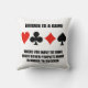 Os jogadores de ponte que entenderem as complexidades do jogo de ponte/ponte duplicada vão desfrutar deste travesseiro decorativo que apresenta os quatro trajes de cartas junto com o truísmo de ponte, dizendo "Ponte é um jogo onde você tem que pensar sobre as mãos de outras Pessoas para ter sucesso".