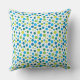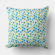 Travesseiro com um padrão brilhante e alegre de pontos primavera em tons azuis e verdes.