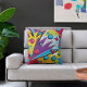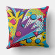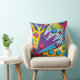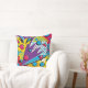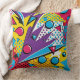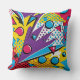 Pop art colorful abstract print throw pillow. Decorative pop art inspired pillow in bright vibrant colors with an abstract design of shapes and splashes of purple, red, blue, and yellow. If you are looking to add a retro vibe to your living room or looking to brighten up a darker couch, this pillow will do just that!