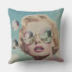 Almofada Pop de Arte Retrora Rosa e Mulher do Espaço Azul