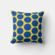 Travesseiros acrescentam um sotaque excelente ao seu decoro doméstico e são uma maneira barata de decorar. Estes pontos geométricos divertidos adicionarão um pop de pizazz a qualquer sala. Estes grandes pontos azuis têm uma linha fina e branca na borda externa e estão colocados sobre um fundo de amarelo brilhante. A cor de fundo pode ser personalizada para seu esquema de cores pessoal.