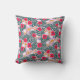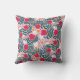 This pillow features a vibrant, playful floral pattern designed in a contemporary "folk art" or "scandi" style. Bold red poppies with dark blue centers. Deep forest-green fern-like leaves that curve around the primary flowers, creating a sense of movement. Small yellow five-petal flowers, tiny blue berries, and wispy white organic shapes that add brightness.
