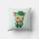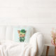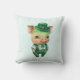 Um travesseiro com uma bela ilustração verde de um porco de pé nos pés de trás, vestido de chapéu de rico, colete e calças. Muito adorável e perfeitamente adequado para Ruas. Dia de Patrick.