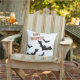 Melhore sua área de vida ao ar livre com este travesseiro de Halloween sazonal. Ele apresenta um design de morcegos pretos com a saudação de "Feliz Dia das Bruxas" em laranja, esboçada em roxo. Este travesseiro exterior resistente ao tempo é adequado para uso interno e externo.