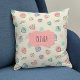 Este adorável travesseiro decorativo personalizado apresenta rabiscos de corações simples, pontos e linhas onduladas pintadas com aquarelas macios em rosa-pincel, verde-menta, lavanda e amarelo-pálido.