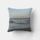 Lindos travesseiros de praia de casamento e areia. Lindo travesseiro de acento ondas do oceano e céu azul e areia da praia. Personalize os primeiros nomes dos noivos na frente. Personalize a data do casamento no verso. A palavra Amor está escrita em texto branco na areia. Ondas quebrando na costa leste na costa arenosa e nuvens brancas leves no céu azul tiradas em Cape May Point, NJ. Design de fotografia original © TamiraZDesigns.