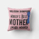 Travesseiro do rosa do prêmio da mãe do mundo o melhor com fita do prêmio.
