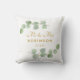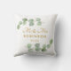 Elegante design de almofada personalizado com folhagem de eucalipto delicada para casamento ou aniversário de Sr e Sra. Personalize com nome e data. Fácil de personalizar. Compre o seu hoje!