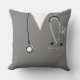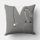 Dor do Creative Medical, com esfregões de cinza, estetoscópio e canivete suíço engraçado. Para personalizar o texto de edição.