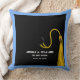 Presente de manutenção de graduação exclusiva com um boné preto clássico e uma fita de ouro sobre um fundo azul claro. Editar texto para adicionar o nome do formando, o ano de classe do mais velho e a escola.