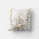 Este travesseiro decorativo adorável apresenta um coelho fofo cavalgando uma ovelha bebê cercada por flores silvestres amarelas, brancas e lilás