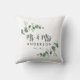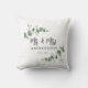 Orçamento lindo e delicado design de almofada personalizado com folhagem de eucalipto para casamento ou aniversário Mr e Mrs. Coleção rústica contemporânea elegante e moderna nas cores verde sage, preto, azul marinho e branco.