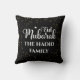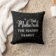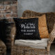Personalize e customize o nome da sua família com estrelas douradas modernas em um fundo preto na almofada Eid da Arabix.