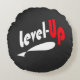 É uma almofada redonda de polyester preta animada projetada com a frase/captura de atenção level-up