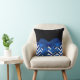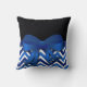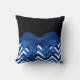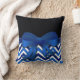 Travesseiro com fêmur azul e branco e arco azul sobre fundo preto.