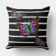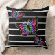 Cor rosa-rosa azul verde preto e branco listrado travesseiro decorativo moderno.
