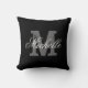 Cor preta personalizada do travesseiro decorativo | do monograma. Coxim de Personalizable monogrammed com letra conhecida e inicial. Na cor cinzenta ou feita sob encomenda à moda do fundo. Design de texto elegante da tipografia do roteiro. Decoração home chique elegante para o sofá ou a cama do sofá.