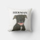 Eu estou apaixonado por esta ilustração bizarra e detalhada da aquarela de um pitbull negro ou um cão com equipe! Personalize esses travesseiros decorativos reversíveis com seu nome ou monograma para elogiar sua decoração! Compre o resto da minha coleção para os mais doces donos de casa, chás de panela, professores, sogra, marido, namorado, papais noeis secretos ou presentes difíceis de comprar! Para ver mais trabalho e aprender sobre esta artista, visite-a em: www.theprintsprincess.com e www.instagram.com/theprintsprincess